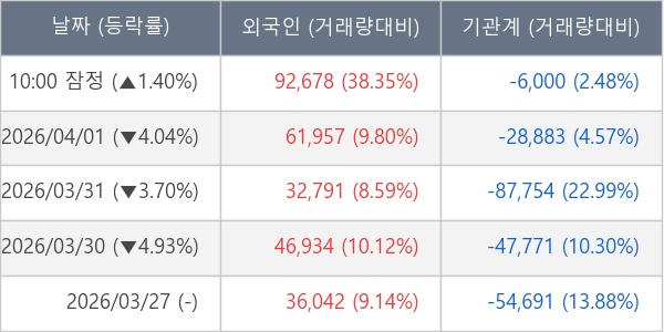 [표] 주요 기관별 순매매량 (단위 주)