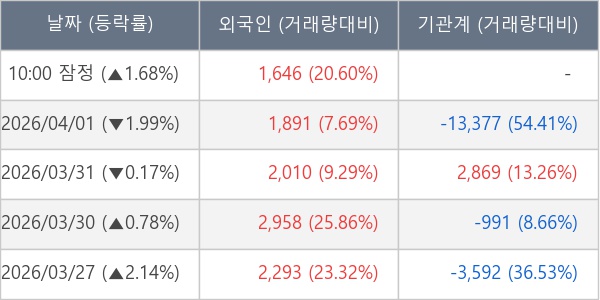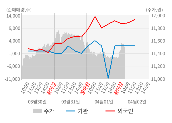 [표] 외국인ㆍ기관 순매매량 (단위 주)