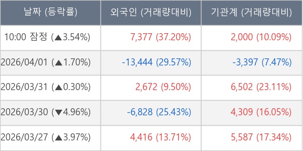 [표] 외국인ㆍ기관 순매매량 (단위 주)
