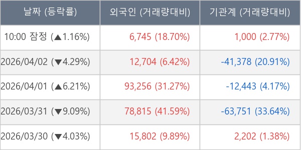 ※ 사모펀드 등 일부 기관의 순매매량은 표시되지 않음