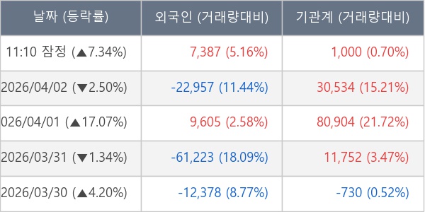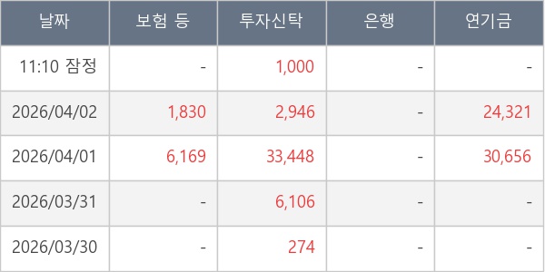 [표] 주요 기관별 순매매량 (단위 주)