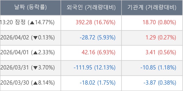 ※ 사모펀드 등 일부 기관의 순매매량은 표시되지 않음