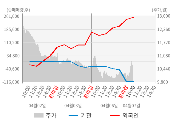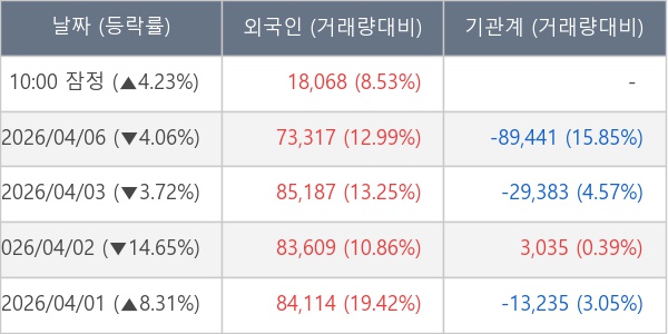 [표] 외국인ㆍ기관 순매매량 (단위 주)