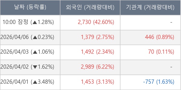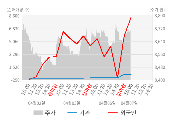[표] 외국인ㆍ기관 순매매량 (단위 주)