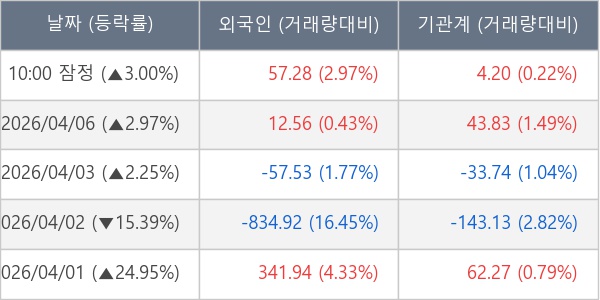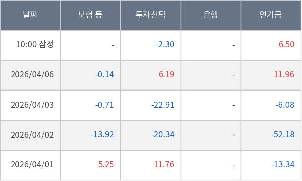 [표] 주요 기관별 순매매량 (단위 만주)