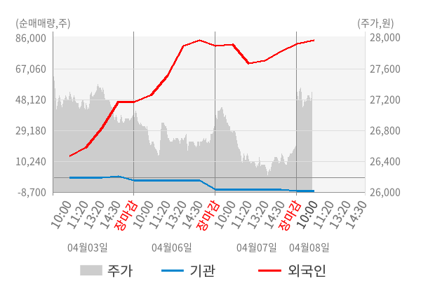 [표] 외국인ㆍ기관 순매매량 (단위 주)