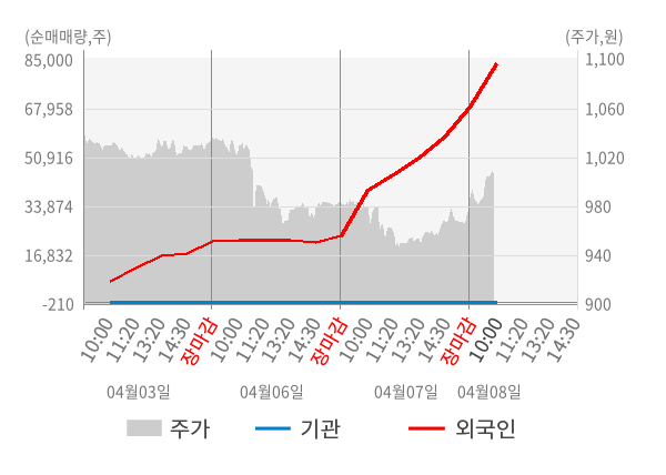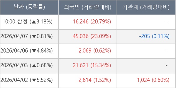 [표] 외국인ㆍ기관 순매매량 (단위 주)