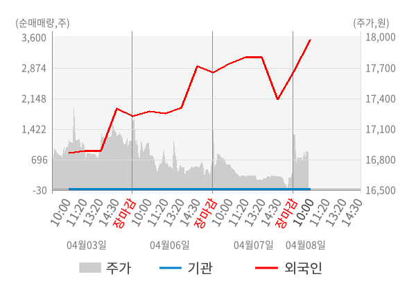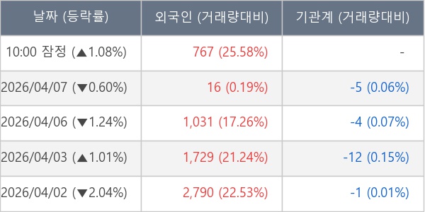 [표] 외국인ㆍ기관 순매매량 (단위 주)