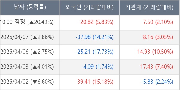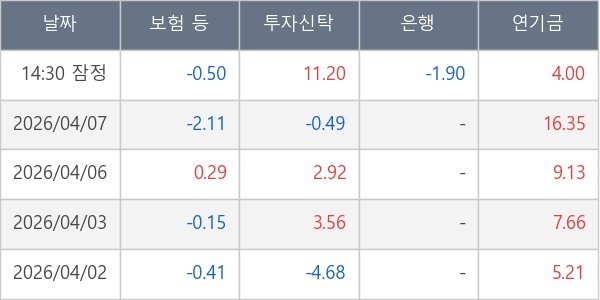 [표] 주요 기관별 순매매량 (단위 만주)