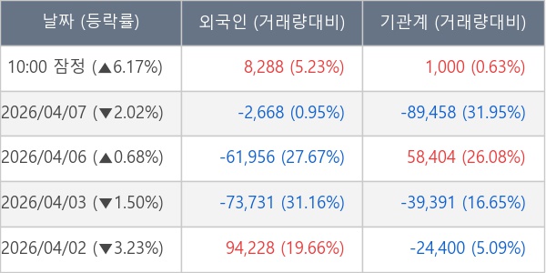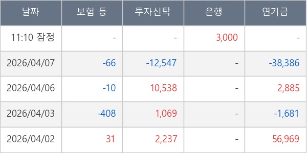 [표] 주요 기관별 순매매량 (단위 주)