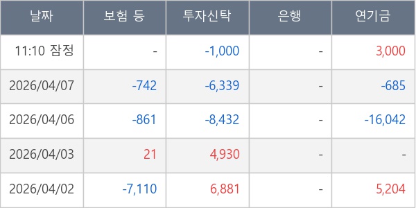 ※ 사모펀드 등 일부 기관의 순매매량은 표시되지 않음