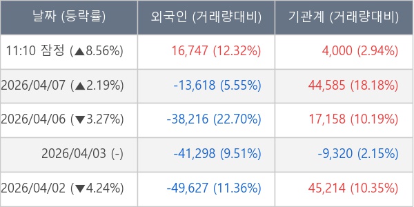 ※ 사모펀드 등 일부 기관의 순매매량은 표시되지 않음