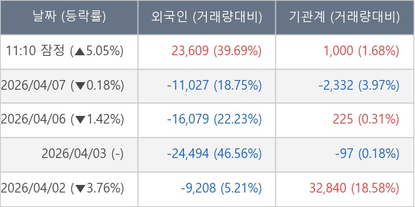 [표] 외국인ㆍ기관 순매매량 (단위 주)
