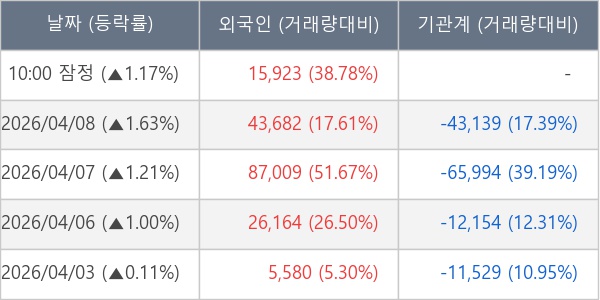 [표] 외국인ㆍ기관 순매매량 (단위 주)