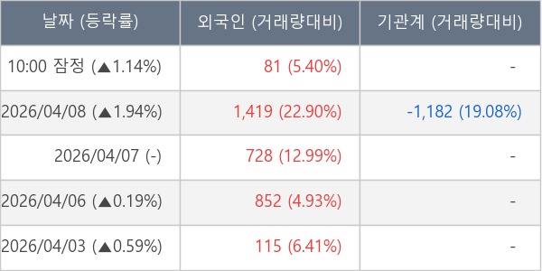 [표] 외국인ㆍ기관 순매매량 (단위 주)