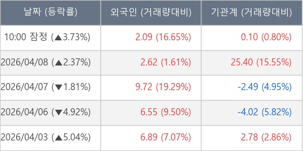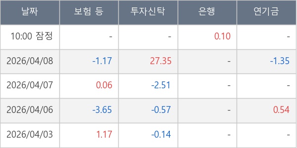[표] 주요 기관별 순매매량 (단위 만주)