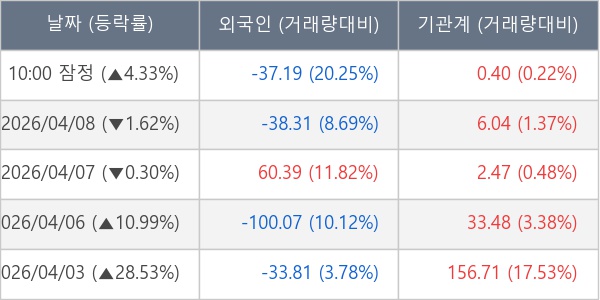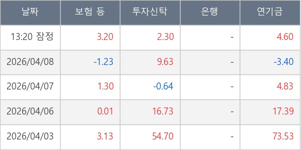 [표] 주요 기관별 순매매량 (단위 만주)
