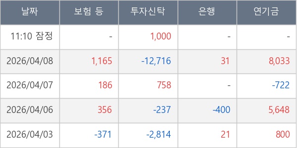 [표] 주요 기관별 순매매량 (단위 주)