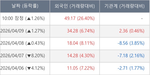 [표] 외국인ㆍ기관 순매매량 (단위 만주)