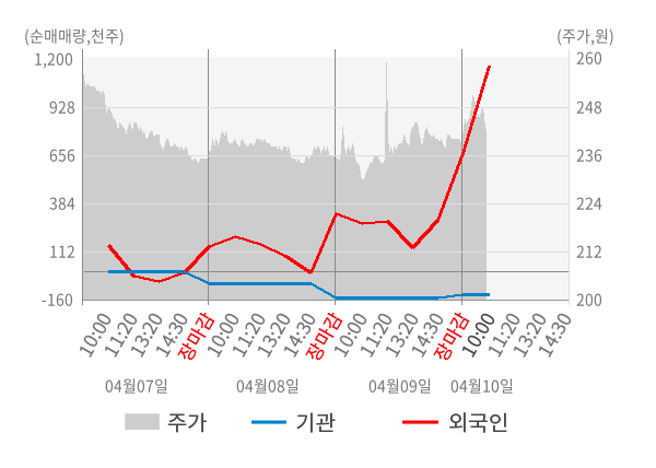 [서울=뉴스핌] 로보뉴스 = 10일 10시 15분 현재 에이프로젠바이오로직스(003060)는 전일 대비 1.26% (현재가 242원) 상승했고, 외국인이 최근 5일 연속 순매수(누적 126.82만 주, 잠정) 행진을 하고 있다.