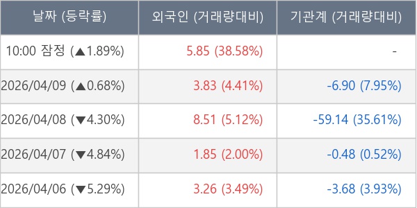 [표] 외국인ㆍ기관 순매매량 (단위 만주)