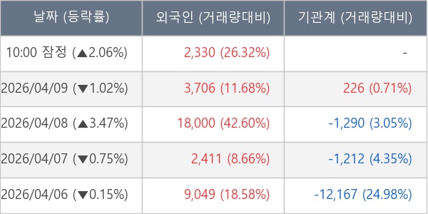 [표] 외국인ㆍ기관 순매매량 (단위 주)