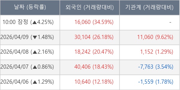 [장중수급포착] 디와이덕양, 외국인 6일 연속 순매수행진... 주가 +4.25%