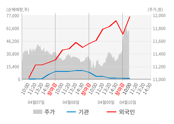 [서울=뉴스핌] 로보뉴스 = 10일 10시 15분 현재 KSS해운(044450)은 전일 대비 2.88% (현재가 11,780원) 상승했고, 외국인이 최근 6일 연속 순매수(누적 18.32만 주, 잠정) 행진을 하고 있다.