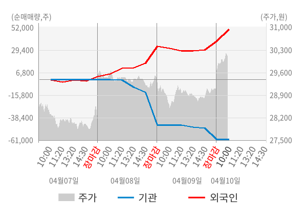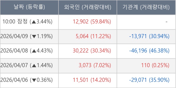 [표] 외국인ㆍ기관 순매매량 (단위 주)