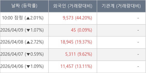 [표] 외국인ㆍ기관 순매매량 (단위 주)