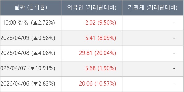 [표] 외국인ㆍ기관 순매매량 (단위 만주)