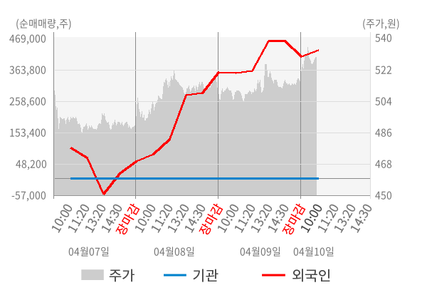 [서울=뉴스핌] 로보뉴스 = 10일 10시 15분 현재 이렘(009730)은 전일 대비 2.72% (현재가 529원) 상승했고, 외국인이 최근 5일 연속 순매수(누적 62.98만 주, 잠정) 행진을 하고 있다.