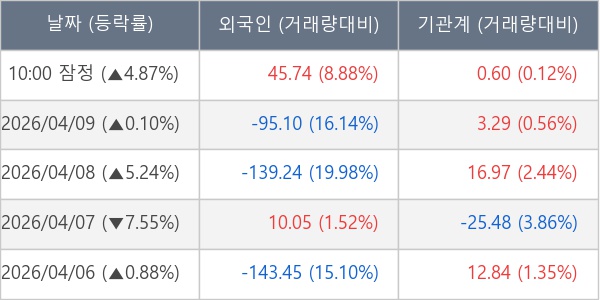 ※ 사모펀드 등 일부 기관의 순매매량은 표시되지 않음