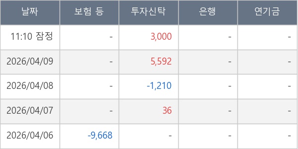 [표] 주요 기관별 순매매량 (단위 주)
