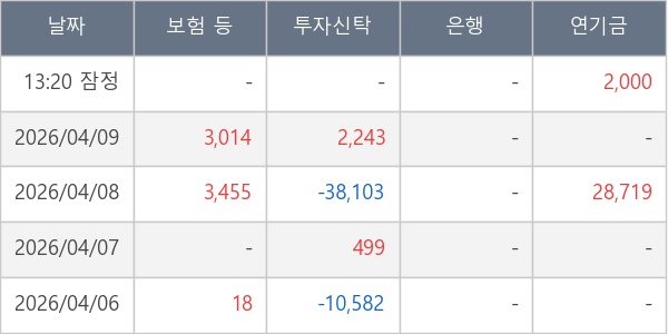 [표] 주요 기관별 순매매량 (단위 주)