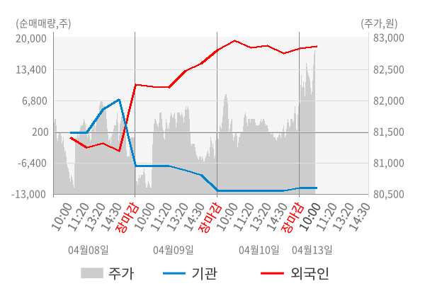 [표] 외국인ㆍ기관 순매매량 (단위 주)