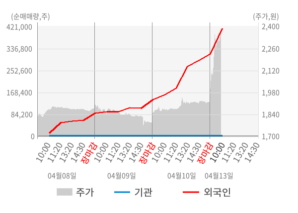 [장중수급포착] 알체라, 외국인 6일 연속 순매수행진... 주가 +23.76%
