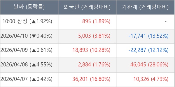 [표] 외국인ㆍ기관 순매매량 (단위 주)