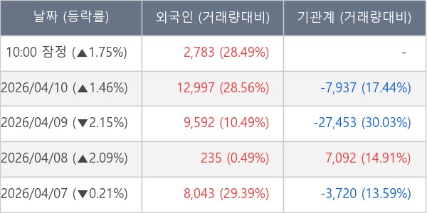 [표] 외국인ㆍ기관 순매매량 (단위 주)