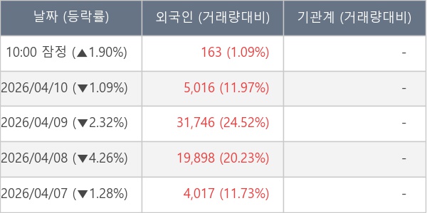 [표] 외국인ㆍ기관 순매매량 (단위 주)