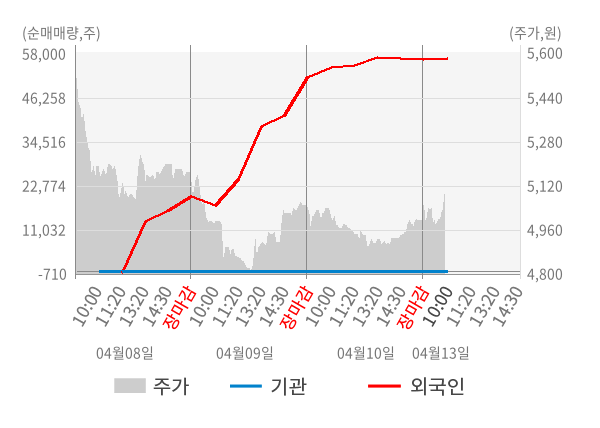 [서울=뉴스핌] 로보뉴스 = 13일 10시 15분 현재 디에스케이(109740)는 전일 대비 1.90% (현재가 5,090원) 상승했고, 외국인이 최근 5일 연속 순매수(누적 60,840주, 잠정) 행진을 하고 있다.
