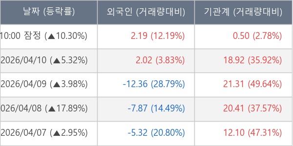 [표] 주요 기관별 순매매량 (단위 만주)