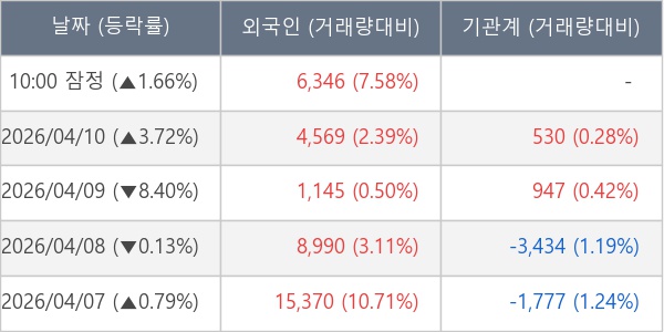 [표] 외국인ㆍ기관 순매매량 (단위 주)