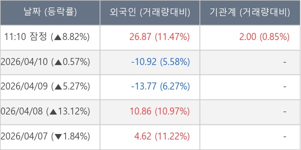 ※ 사모펀드 등 일부 기관의 순매매량은 표시되지 않음