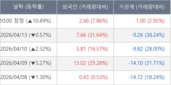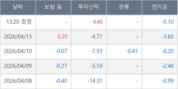 [표] 주요 기관별 순매매량 (단위 만주)