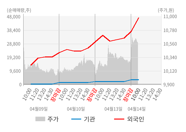 [서울=뉴스핌] 로보뉴스 = 14일 10시 15분 현재 와이즈넛(096250)은 전일 대비 2.52% (현재가 10,570원) 상승했고, 외국인이 최근 5일 연속 순매수(누적 78,112주, 잠정) 행진을 하고 있다.