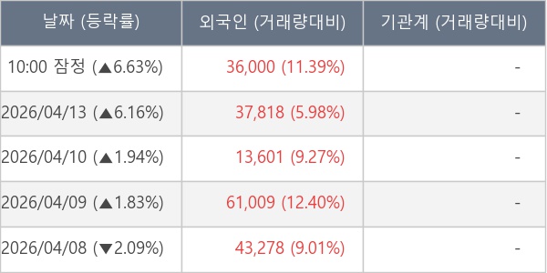 [표] 외국인ㆍ기관 순매매량 (단위 주)