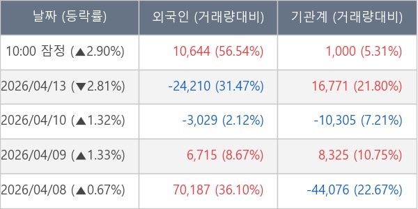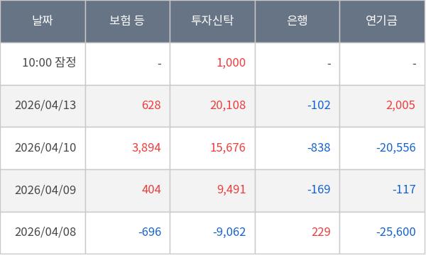 [표] 주요 기관별 순매매량 (단위 주)