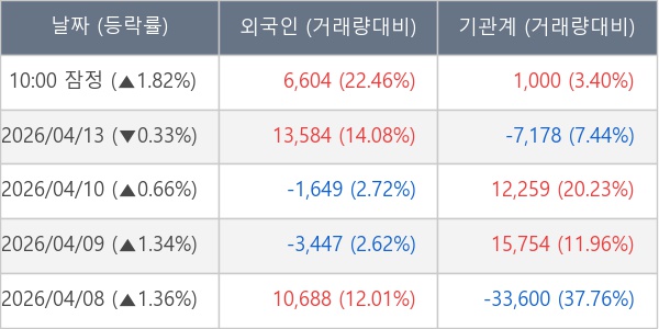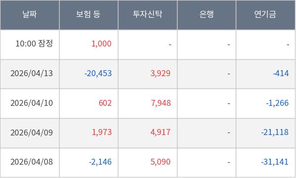 [표] 주요 기관별 순매매량 (단위 주)