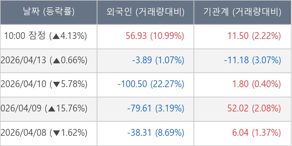 ※ 사모펀드 등 일부 기관의 순매매량은 표시되지 않음
